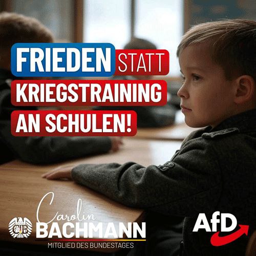 Nancy Faeser will unsere Schulen nutzen, um unsere Kinder auf den Krieg vorzubereiten. Ein beängstigendes Signal für unser Land. Statt unsere Kinder mit Kriegsszenarien zu verstören, sollten wir den Fokus auf Frieden und Völkerverständigung legen. Es ist unverantwortlich, in Schulen eine Atmosphäre der Angst zu schaffen, anstatt Werte und Friedfertigkeit zu vermitteln.