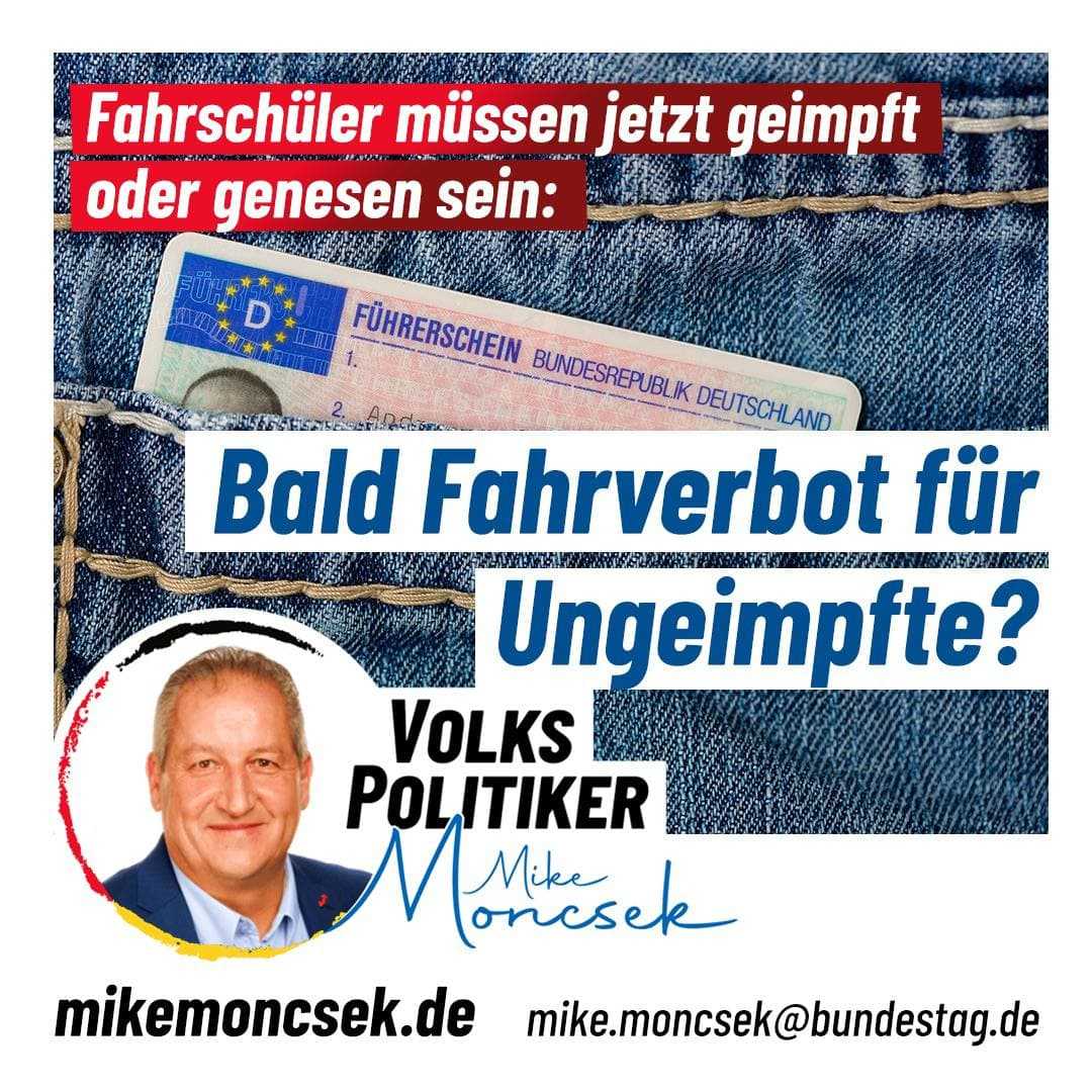 Nur wer geimpft oder genesen ist – ein Status der sich nach bisher sechs, nun drei Monaten auch schon wieder erledigt hat – darf Fahrstunden nehmen und Motorrad- oder Autofahren lernen – eine wesentliche Voraussetzung für Mobilität und freien Zugang zu Ausbildung und Teilhabe – gerade auf dem Land.
