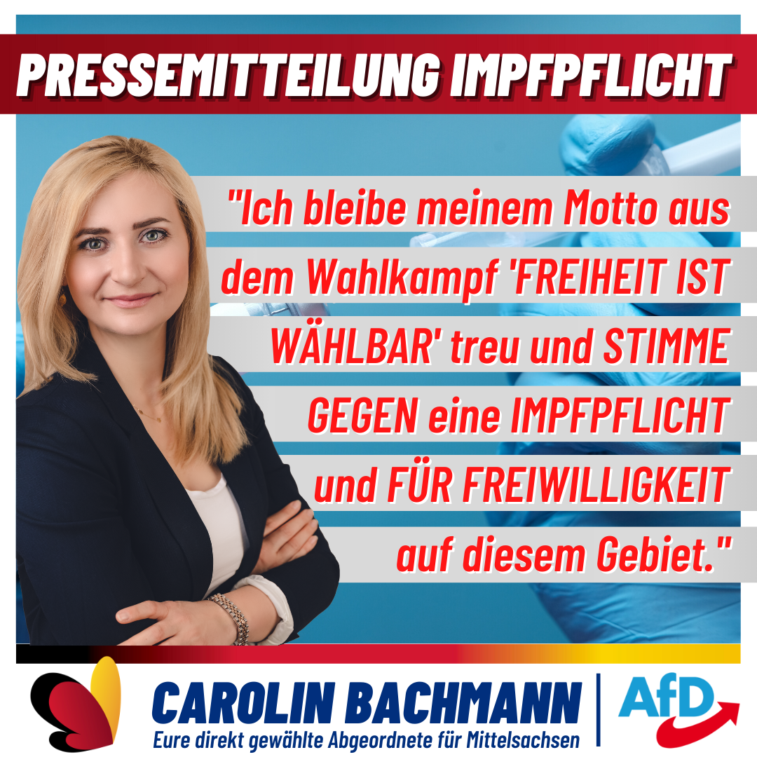 • Carolin Bachmann (MdB): Bleibe meinem Motto „Freiheit ist wählbar“ treu – stimme gegen eine Impfpflicht und für Freiwilligkeit!