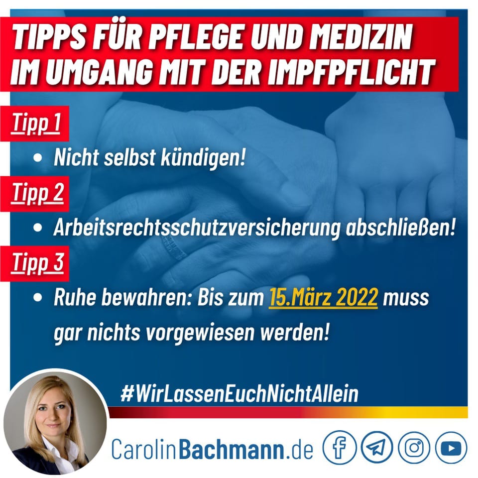 | *** Informiert bleiben auf Carolin Bachmanns Infokanälen: Facebook, Telegram, YouTube, Instagram & Internetseite. *** |
