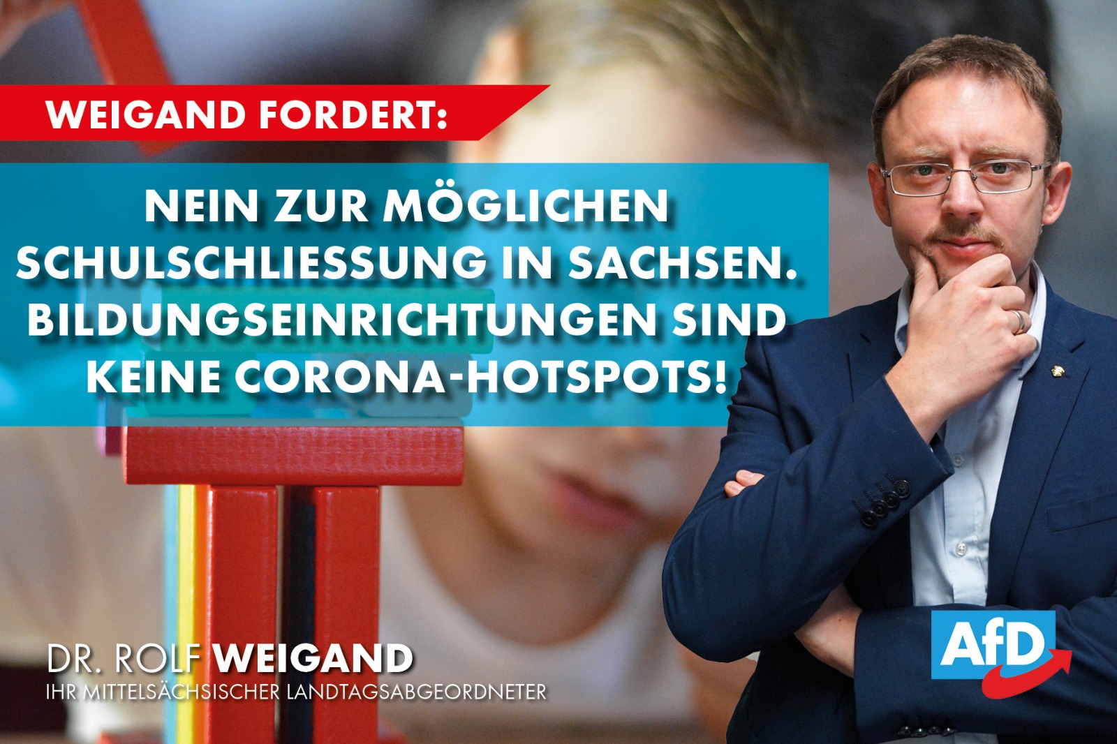 Die geplanten Kita- und Schulschließungen in Nordsachsen, Zwickau und im Erzgebirge kritisiert Dr. Rolf Weigand, bildungspolitischer Sprecher der AfD-Landtagsfraktion und fordert deren Offenhaltung bis Ostern.